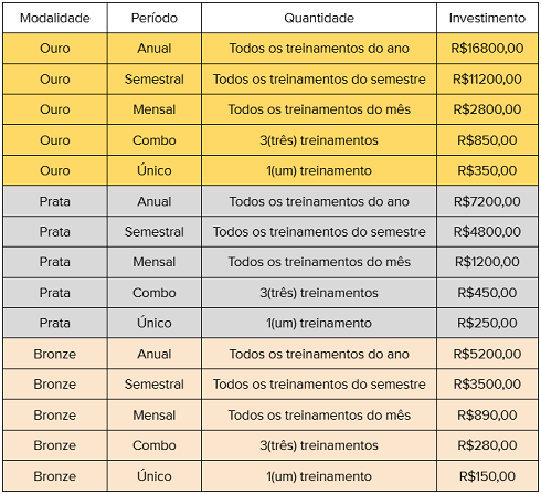 Existem 3(três) modalidades de patrocínio, hierarquizadas conforme o nível de exposição e benefícios concedidos ao patrocinador, a saber: